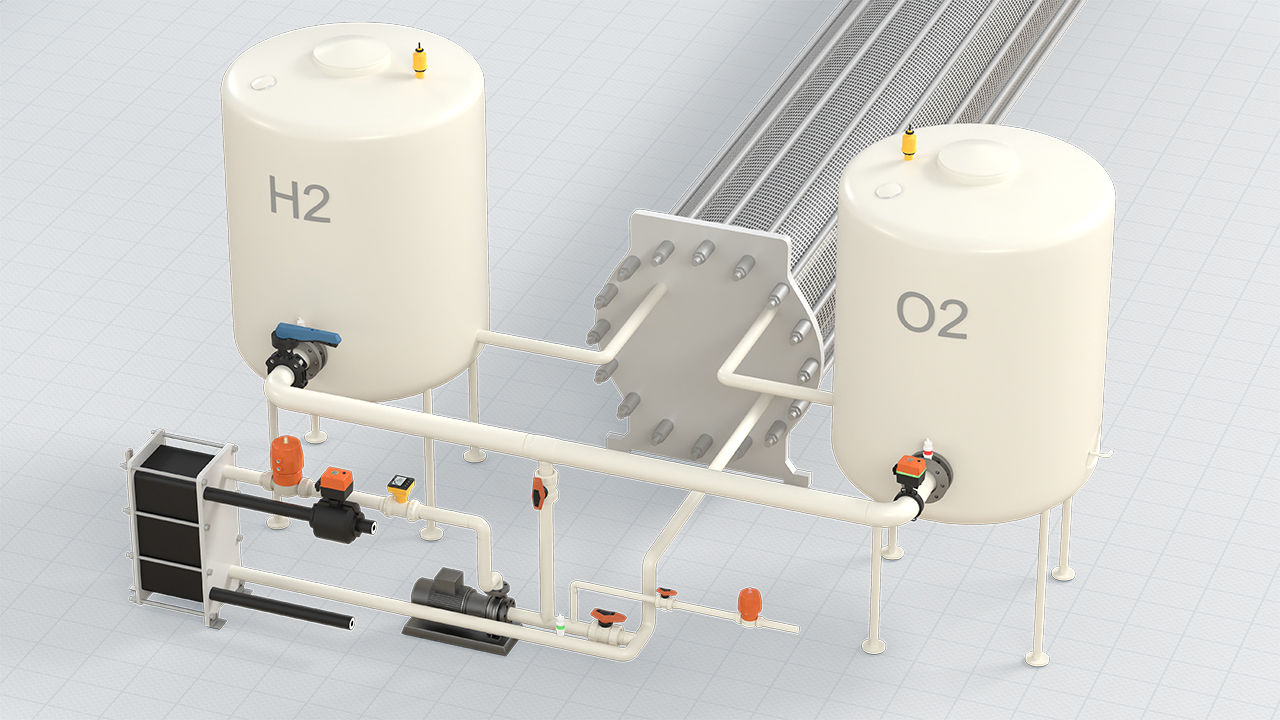Kunststoffrohrleitungssysteme transportieren verschiedene Flüssigkeiten und Gase, um das Elektrolyt und Gas zu kühlen, und Zufuhr- und Prozesswasser bereitzustellen. Um die Zugänglichkeit von grünem Wasserstoff zu erhöhen, setzen wir uns dafür ein, die Produktion von grünem Wasserstoff auszubauen, um die Kosten zu senken, während das Molekül durch die Wertschöpfungskette fortschreitet.