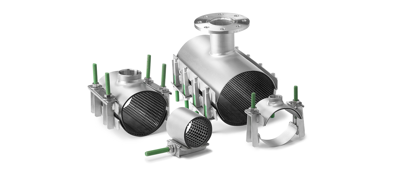 Die Multi/Clamp Produktfamilie bietet eine große Auswahl an Edelstahlschellen zur schnellen Reparatur von beschädigten Rohren. Die Reparaturschellen bestehen aus einem oder mehreren Schellenteilen, die teilweise oder vollständig mit einer Gummidichtung abgedeckt werden, um Leckagen zu schließen. Dank der Schellenteile können die Reparaturschellen an Rohren in einem Durchmesserbereich von 15 mm bis zu 1000 mm angebracht werden.