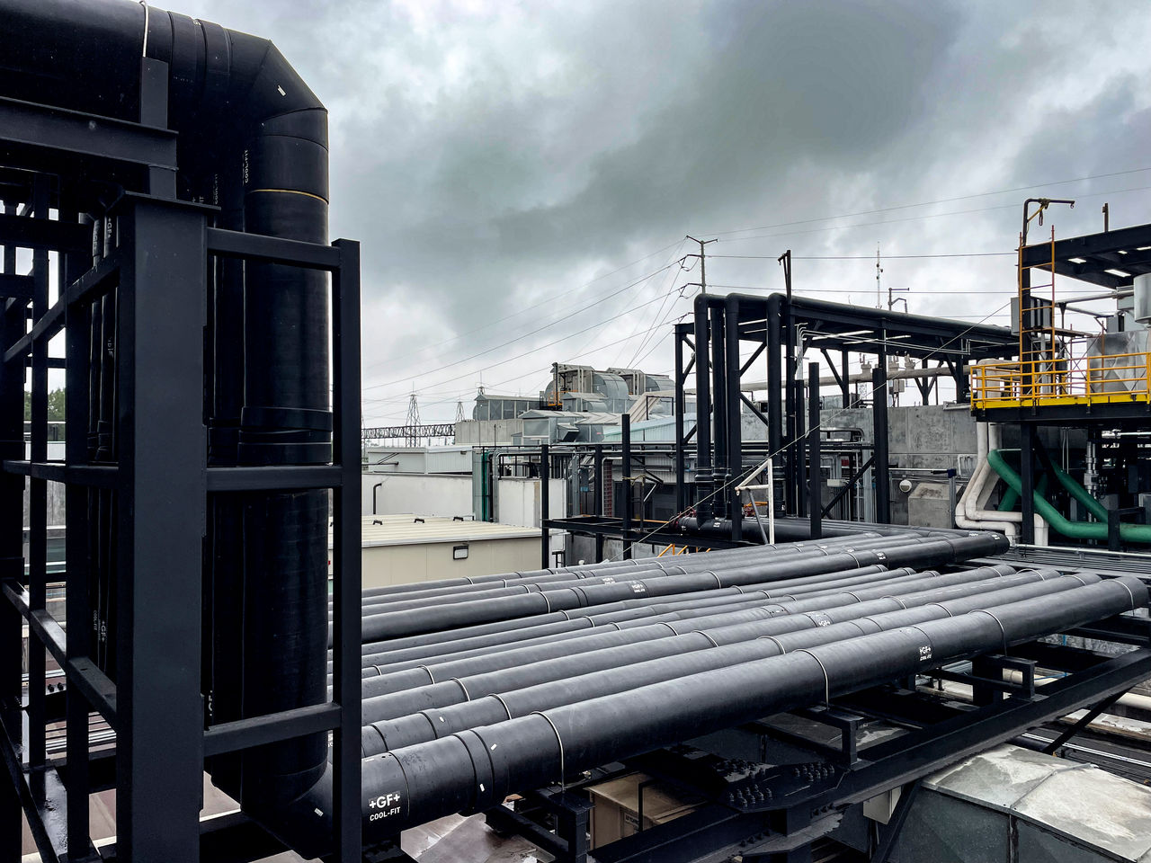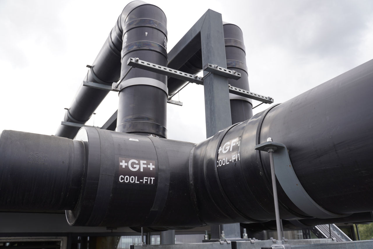GF Industry and Infrastructure Flow Solutions solves these challenges with COOL-FIT and PE-100 plastic piping systems engineered for rooftop applications, easily handling water, glycols, or brine. Resistant to temperature swings, UV, and general weathering while also bird-proof, these systems deliver up to 25 years of reliable performance. Lightweight and easy to handle, they cut installation time compared with welded metal systems and eliminate the need for additional cladding, while ensuring reliable, efficient cooling for buildings across a wide range of industries.