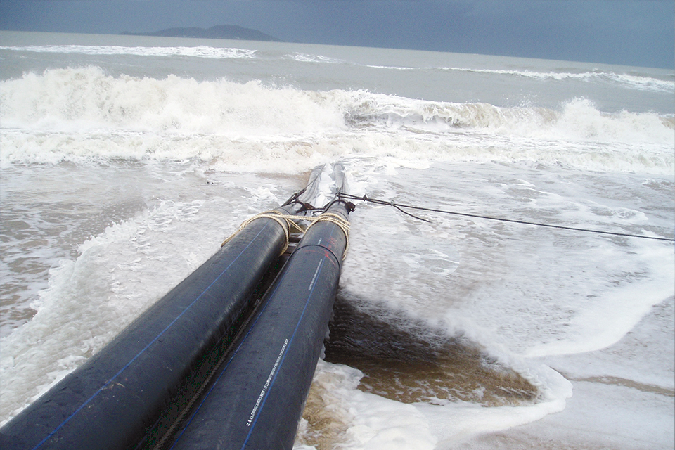 Water intake lines convey raw water from the source, rivers, or sea to the storage area before its treatment. Inhibitors such as biocides are added to prevent biofilm build-up and incrustation. Since long distances are bridged, a corrosion-free solution, often involving large diameters, is needed.