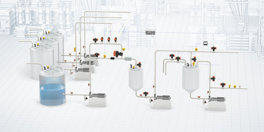 We dose concentrated chemicals in-line or via static mixers to ensure accurate dilution. Custom plastic systems can be designed using pressure control valves, flow meters, and instrumentation.